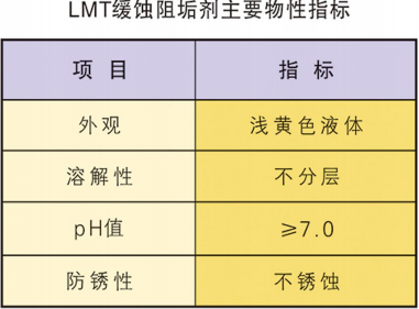 LMT緩蝕阻垢劑由防銹劑、緩蝕劑、阻垢劑、殺菌滅藻劑等有機(jī)酸鹽和無機(jī)酸鹽組成。外觀為淺色液體,有效成分約為30%,PH值≥7。