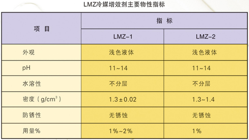 LMZ型冷媒增效劑為LM型冰河冷媒系列產(chǎn)品的補充代用品,開發(fā)本產(chǎn)品的首要目的是考慮到地處邊遠(yuǎn)地區(qū)的廠家,由于長途運輸不便,不便直接添加冷媒,則可以選用該冷媒增效劑。因本品屬于濃縮型添加劑,用量僅為冷卻介質(zhì)水溶液的1%-2%,將其加入貴公司原來用的酒精、乙二醇、丙二醇或丙三醇等水溶液介質(zhì)中,便可以起到抑制揮發(fā),提高載冷能力,防止冷卻介質(zhì)銹蝕設(shè)備等作用,本品在防銹能力上尤為突出。由于以上這些作用,保證您的冷卻系統(tǒng)安全穩(wěn)定地運轉(zhuǎn),從而大大降低了運行成本,同時確保您的設(shè)備使用壽命延長一倍以上。