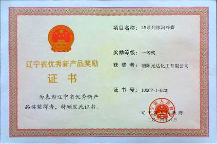 朝陽光達化工有限公司研發(fā)生產(chǎn)的專利產(chǎn)品—LM系列冰河冷媒榮獲遼寧省優(yōu)秀新產(chǎn)品!