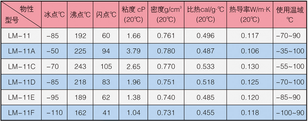 LM-11系列冰河冷媒由高級烷烴改性而成,外觀為淺色液體,不溶于水,低毒,低粘度,化學(xué)性質(zhì)穩(wěn)定,可燃。