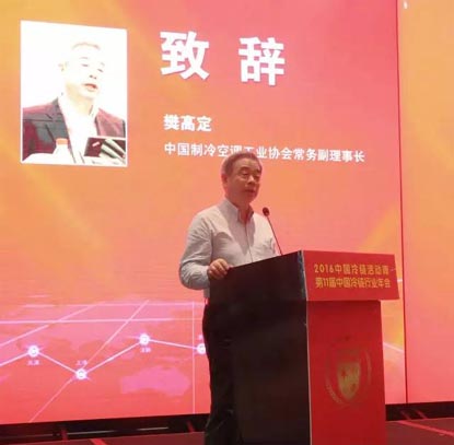 中國制冷空調(diào)工業(yè)協(xié)會(huì)常務(wù)副理事長樊高定為大會(huì)開幕致辭。