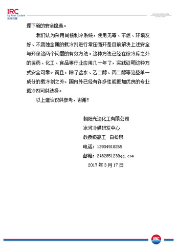 以上是我公司對《設(shè)計規(guī)范》提出的意見,同時也需要同行們的監(jiān)督和幫助,歡迎廣大冷庫業(yè)主,工程商,上下游企業(yè)來電咨詢冰河冷媒載冷劑制冷系統(tǒng)!
