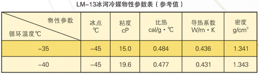 本品適用于低溫庫(kù)和速凍庫(kù)做間接制冷載冷劑使用。使用時(shí)先將系統(tǒng)清洗干凈,然后將本品直接加入系統(tǒng)使用,具體物性參數(shù)參考下表。