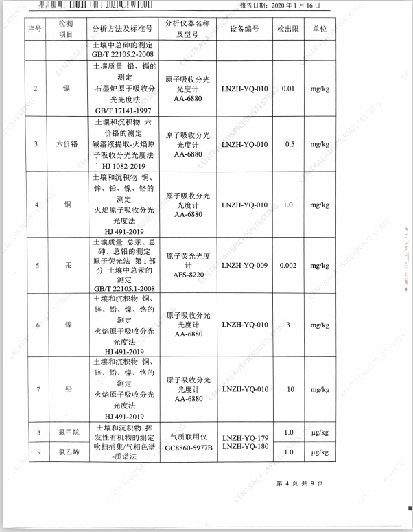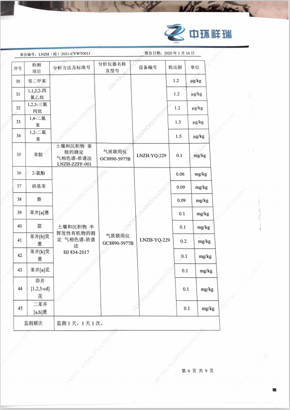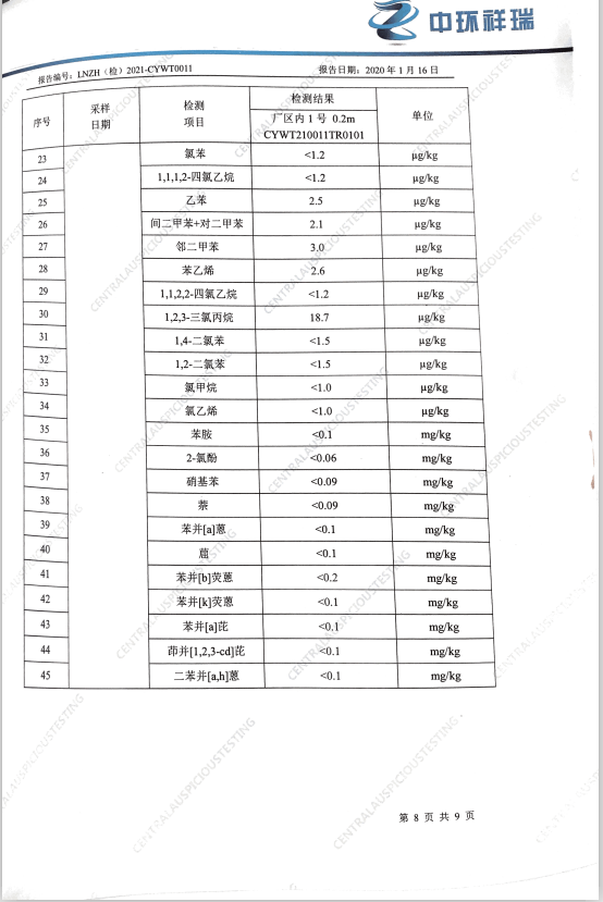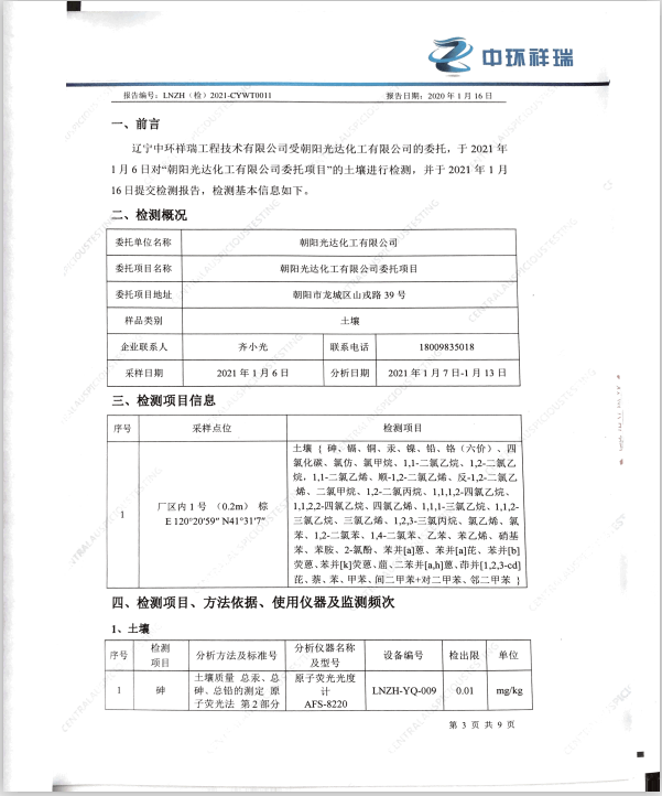 朝陽(yáng)光達(dá)化工有限公司西廠區(qū)土壤檢測(cè)報(bào)告公示